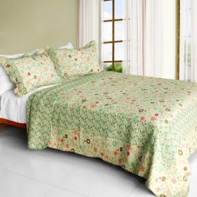 [Cool Spring] 3PC Cotton Vermicelli-Quilted Printed Quilt Set (Full/Queen Size)