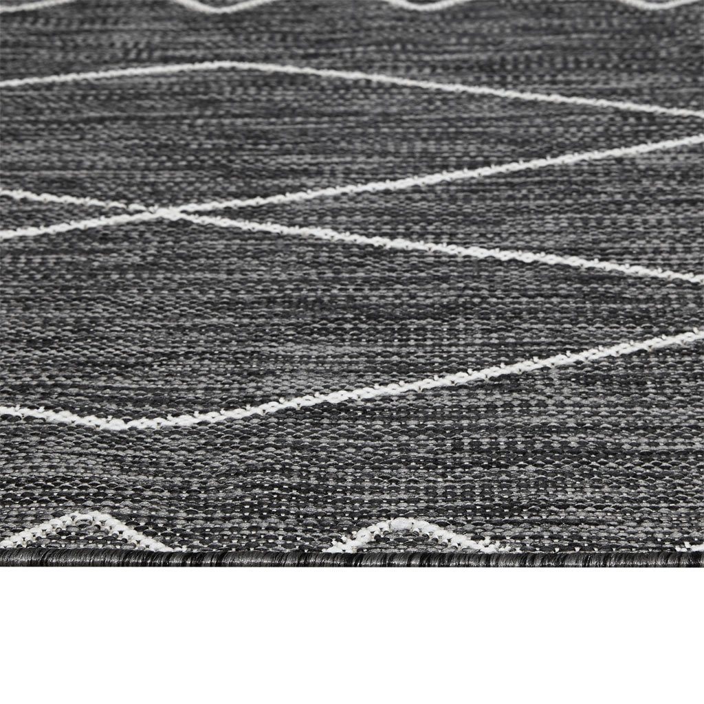 DescriptionThe Madison Park Darya Moroccan Indoor/Outdoor Rug offers an ideal update to your home or patio area. Made in Turkey, this flatweave polypropylene rug features a geometric Moroccan pattern in grey and white hues, for a chic globally inspired look. Stain and fade resistant, this indoor/outdoor rug is durable for all seasons and easy to clean.PRODUCT DETAILS3x7' Runner1 Rug: 2'7"x6'10" (Runner)CARE INSTRUCTIONClean with water from a standard hose